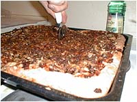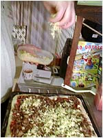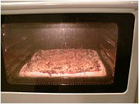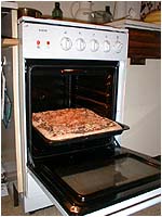 Her koooser pizzaen seg. Selv om du ikke ser det på bildet, har osten begynt å smelte til en fortryllende deilig kosistens. (Kjenner du ikke at du får vann i munnen?) |